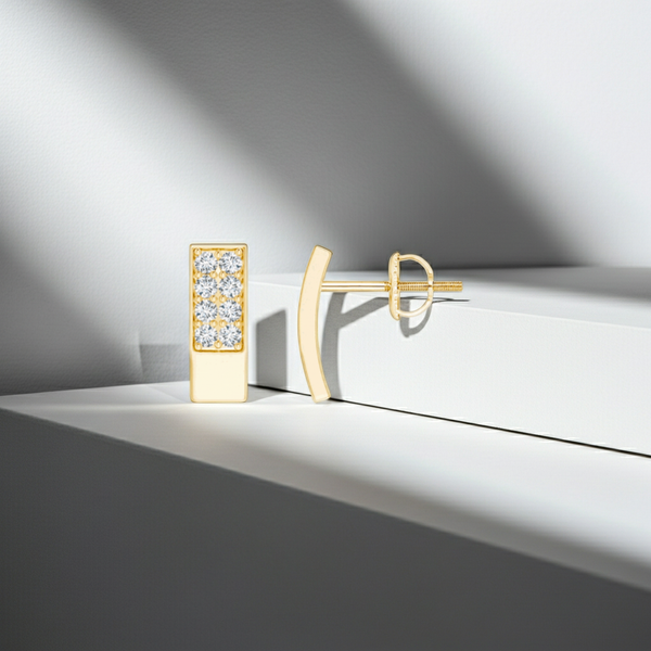 These 14K solid gold two line bar diamond earrings are the perfect addition to any jewelry collection. These earrings feature two classic bars, each lined with four twinkling diamonds. Perfect for everyday wear or for special occasions, these earrings will become a treasured piece in any woman's jewelry wardrobe.
