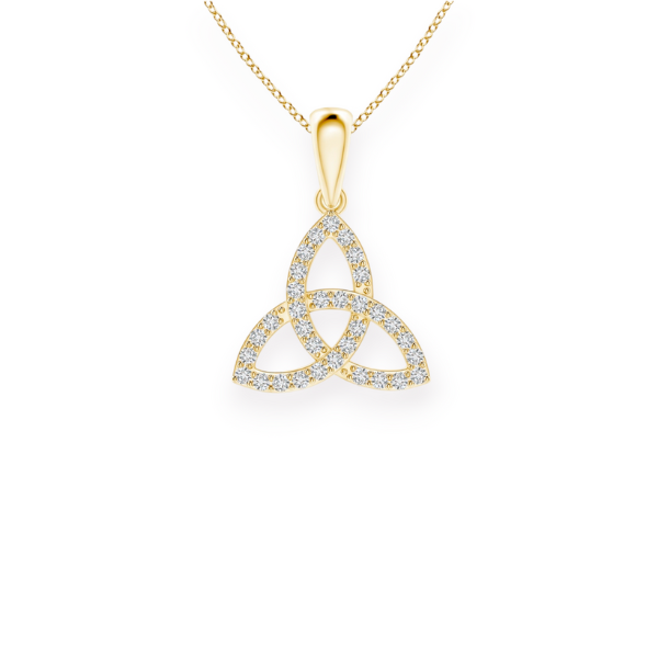 Introducing our stunning 14K Solid Gold Trinity Knot Diamond Necklace. Crafted from high-quality solid gold, this necklace features a beautiful Trinity Knot pendant adorned with sparkling diamonds. The Trinity Knot, also known as the Triquetra, is a symbol of eternity and unity, making this necklace a meaningful and timeless piece of jewelry.