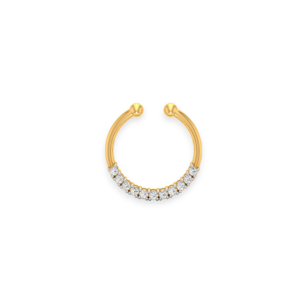 Introducing our stunning 18K Solid Gold Diamond Septum Nose Ring, the perfect addition to your jewelry collection. Crafted from high-quality 18K solid gold, this nose ring is both elegant and durable. The delicate design features a sparkling diamond in the center, adding a touch of luxury to any look. This septum nose ring is the perfect way to elevate your style and make a bold statement.