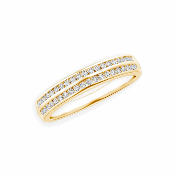 This stunning 14K Solid Gold Channel Setting Double Line Diamond Ring is the perfect piece to add to your jewelry collection. Made with high-quality 14K solid gold, this ring exudes luxury and elegance. The solid gold band is sleek and timeless, making it a versatile piece that can be worn for any occasion.