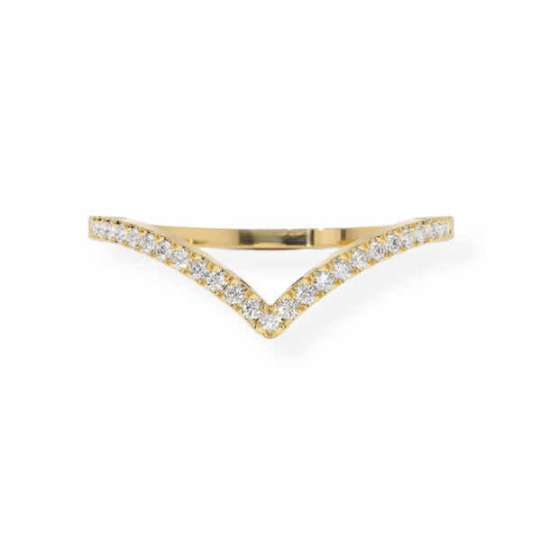 This beautiful diamond engagement ring is sure to make your special someone say “yes”! The ring features a stunning V-shaped band with a dazzling array of round-cut diamonds. The center diamond is especially eye-catching, with a brilliant cut that catches the light and sparkles brilliantly.