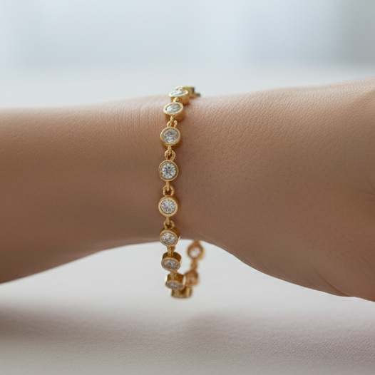 Elevate your wrist with our 14K Solid Gold Bezel Link Setting Tennis Bracelet. Adorned with a classic bezel setting and sleek gold links, this bracelet exudes luxury and elegance. Crafted from 14K solid gold, it is a timeless piece that will elevate any outfit for years to come.
