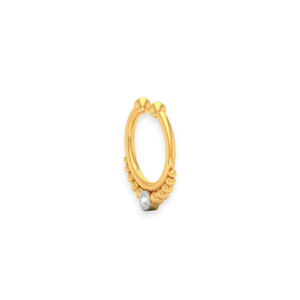 This 18K Solid Gold Bezel Setting Single Diamond Septum is a luxurious and stylish addition to your jewelry collection. The single diamond is elegantly set in a bezel setting, giving it a timeless look. The septum clicker securely attaches to your septum and adds a touch of sparkle to your look. The solid gold construction ensures lasting quality and durability, so you can enjoy this piece for years to come. Wear it to dress up any outfit or make a statement at special occasions.