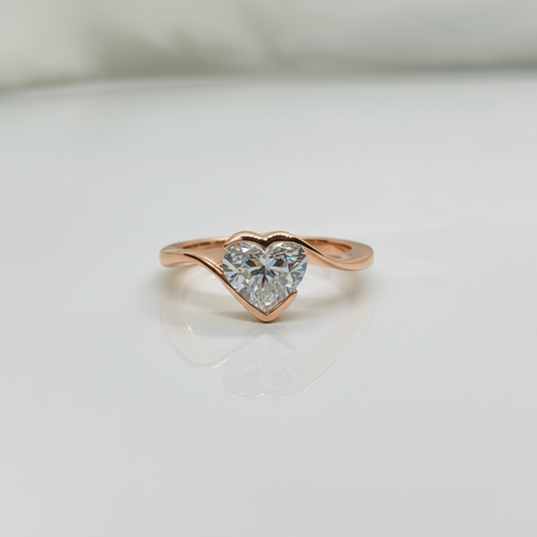 Celebrate your unique love story with this beautiful heart-shaped solitaire diamond ring. The thoughtfully designed bypass setting cradles your diamond while creating an open, flowing silhouette that feels both modern and timeless. Crafted in 14K solid gold, this ring is built to accompany you through life's most meaningful moments. Whether marking an engagement, anniversary, or personal milestone, this piece honors your journey with grace and authenticity. A ring that supports your dreams and reflects the strength of your commitment.